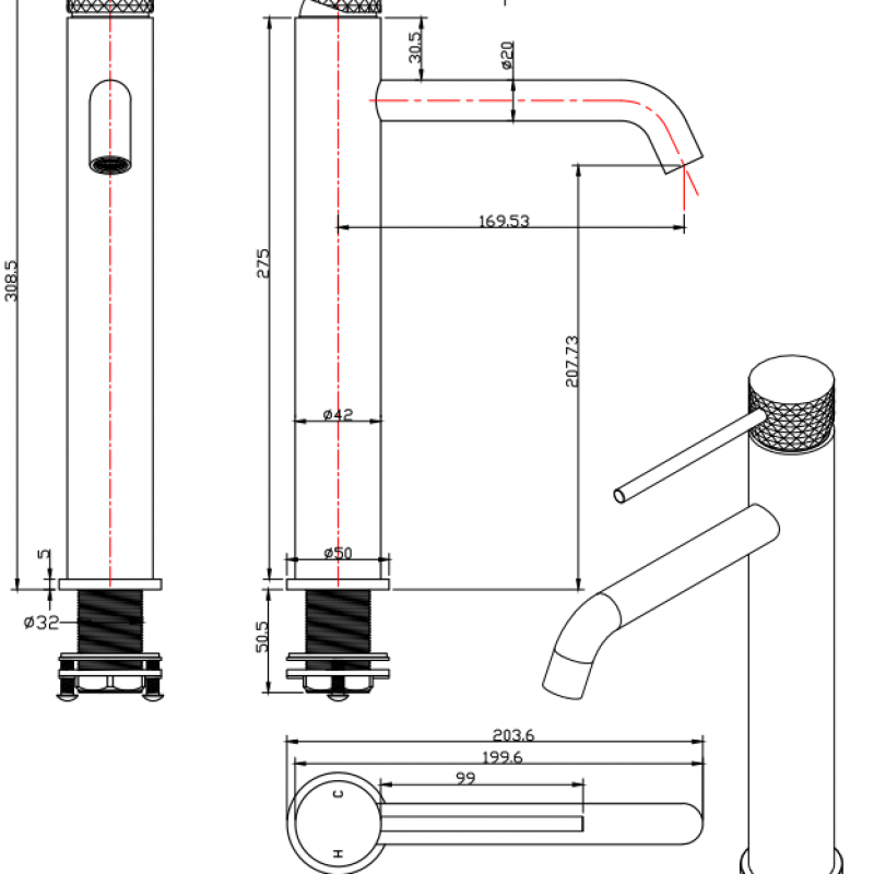 60131GM, High Basin Mixer-Gun Metal